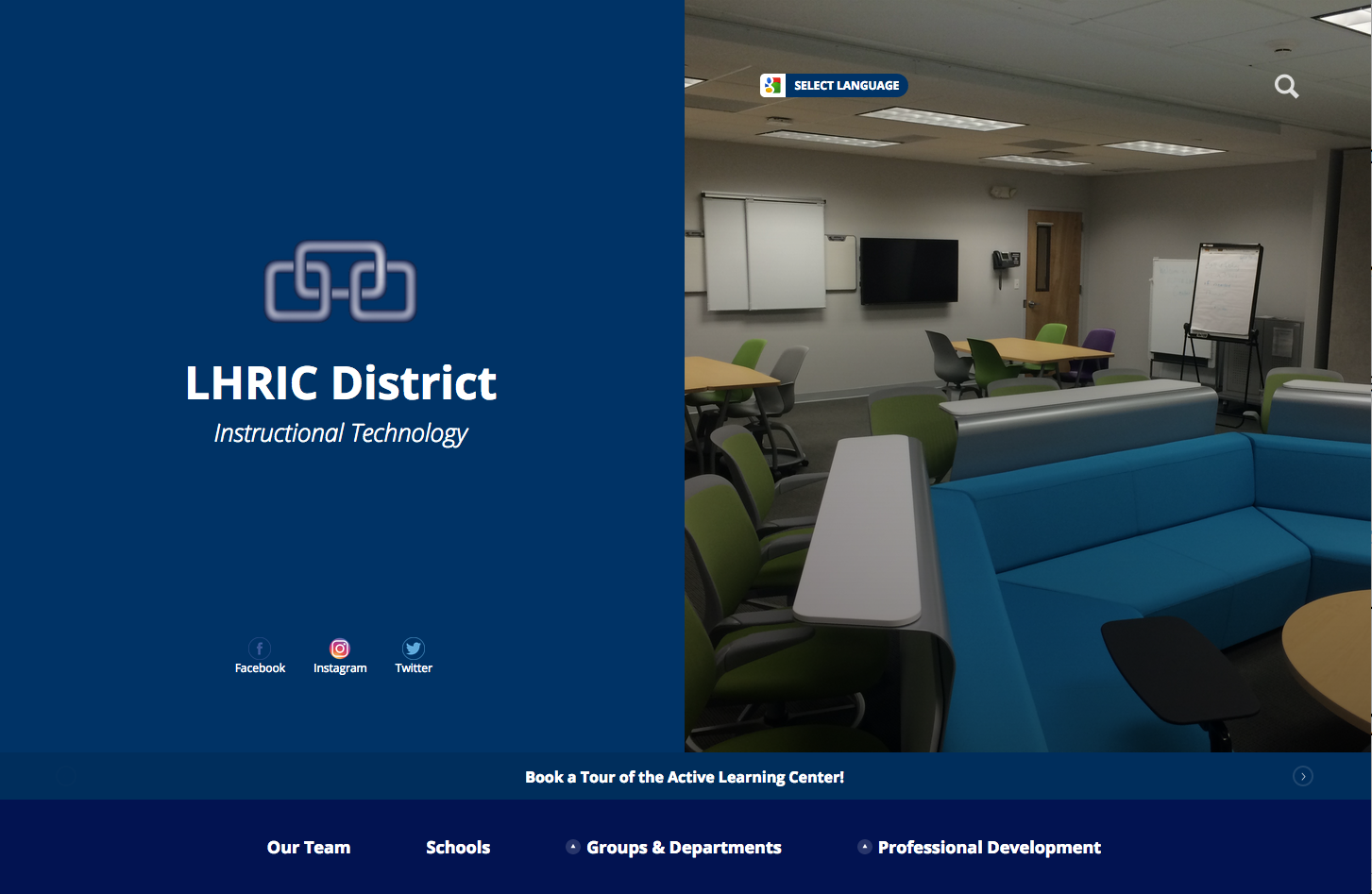 The Lower Hudson Regional Information Center (LHRIC) Instructional Technology center uses cool blues and crisp white to give their page a calm and professional feel.