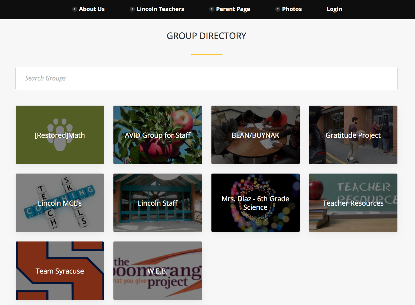 Lincoln supports its teachers with faculty groups. Groups provide both public websites and private, logged-in spaces for faculty to connect.